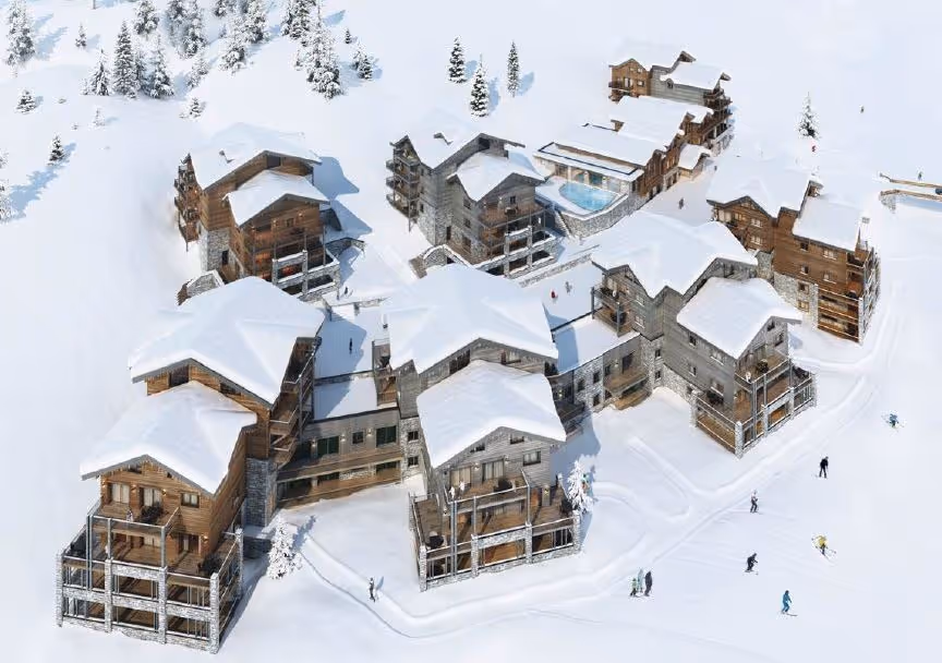 Le projet consiste en la construction d’un ensemble immobilier luxueux de 8 chalets (104 lots) avec pour objectif la constitution d’un hameau. L’artère centrale est dédiée aux circulations piétonnes, ponctuées d’aménagements paysagers et d’espaces de partage.